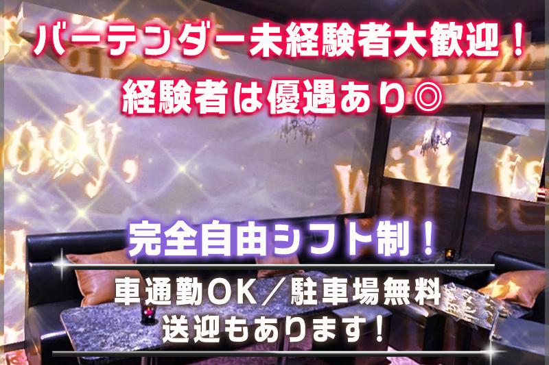 | 待遇及び福利厚生 | ◇全額日払いOK ◇昇給あり 頑張り次第で随時給与UP↑↑※2,000円以上もあります。 ◇バーテンダー経験者優遇あり ◇能力給あり ◇各種手当(ポイントバックあり) ※能力給や各種手当(ポイントバック)の詳細に関しましては、細かくなりますので面接時に詳しくご説明させていただきます。 ◇送迎あり ◇売上ノルマや強制もなし ◇服装自由 ※ジーパンやジャージ、サンダルなどラフすぎる格好はごめんなさい ◇髪型・髪色・ネイル・ピアスなど自由 ◇車通勤OK※駐車場無料 ◇ビラ配り・キャッチ行為・営業活動などは一切なし |