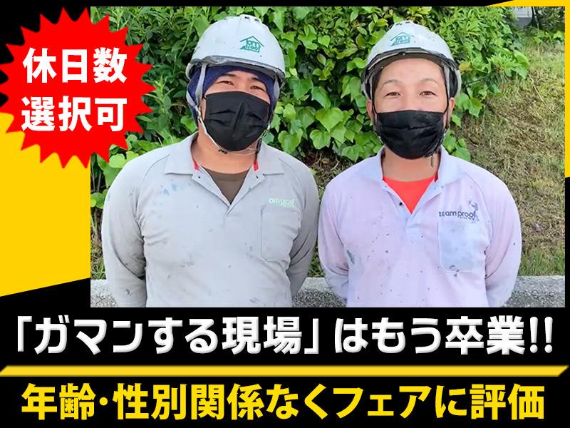 | 待遇及び福利厚生 | ◆昇給あり ◆賞与(年1回) ◆社会保険完備 ◆寮完備(会社規定あり) ◆制服貸与 ◆資格取得支援制度あり ※1回目全額免除(講習費・試験費用) ◆防水施工(1.2級)など ◆試用期間あり ◆車・バイク通勤OK ◆給与(月末締め10日払い) |